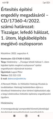 Telekom is azt mondta ez év végéig ki lesz építve, NMHH nál még nincs benyújtva semmilyen kérvény.