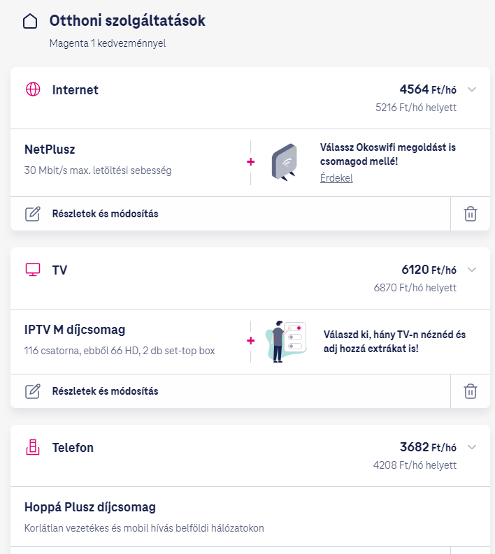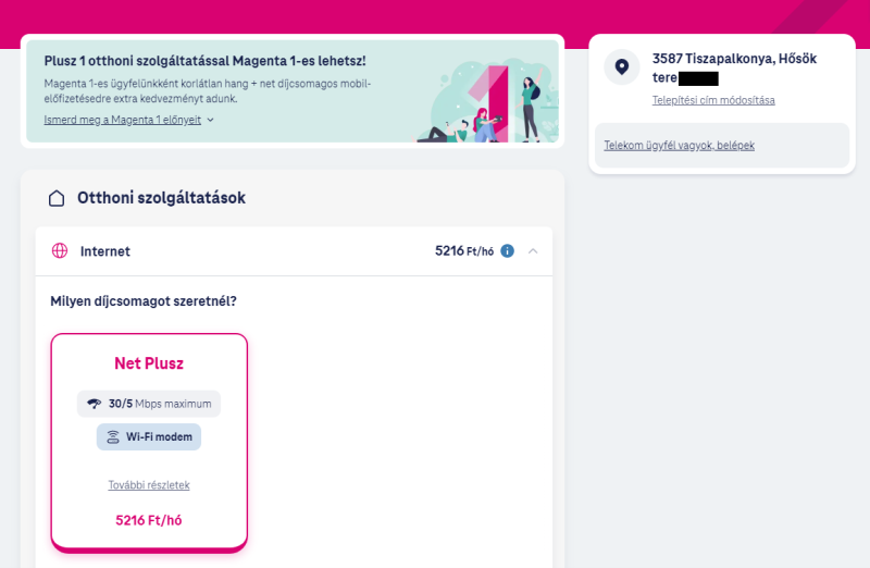 De össze is tudtam egy teljes csomagot állítani Internet + TV + Telefon + mobil azaz Magenta 1-ben Palkonyán: