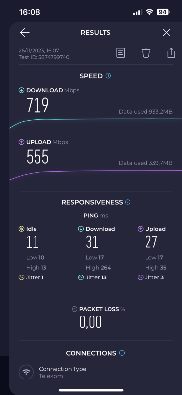 Nem csak a panelosoknak van gigabites, multi gigabites (2.5G) előfizetésük. Bag egy kb. 4000 fő lakos falu, mégis bevezették az optikát, ráadásul 2 szolgáltató is. Elárulom a másik szolgáltató a 4iG (DIGI) szintén optikával. Mi se gondoltuk hogy egy 4000 lakos faluba be fognak vezetni ilyen hálózatot, ráadásul kettőt is. Régebben itt Galgamenti Kábeltelevízió szolgáltatott ED3.0 koaxon és az Invitel ADSL-en. Az előbbit felvásárolta a Telekom így kiépítette a koax alá az optikát. Az Invitelt pedig a DIGI, így lett egy másik szolgáltató is aki szintén optikai hálózaton szolgáltat.