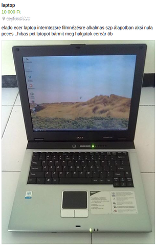 "Packard Bell laptop eladó. Vannak hibái,nem működik a billentyűzet de igény esetén adok hozzá egy működőt. Nem értek hozzá,de szakértő kéz szerintem ki tudja küszöbölni a hibáit."