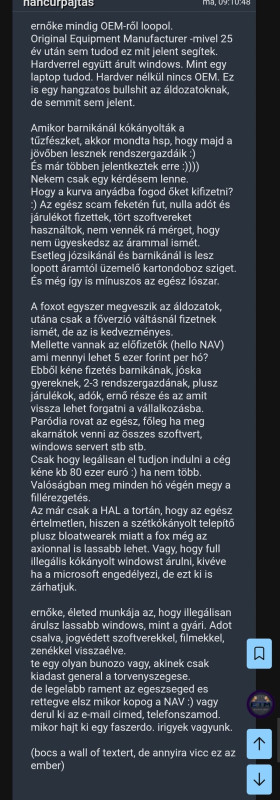 Azért pár kérdés felmerül az utalással kapcsolatosan, mivel elmondása szerint legális az MS-sel hivatalos kapcsolatot mond. Szóval ha xy noob laikus vásárol nála, és oké, informatikában nem járatos, de annyit azért tud, ha bemegy a helyi műszaki boltba számlát kap.