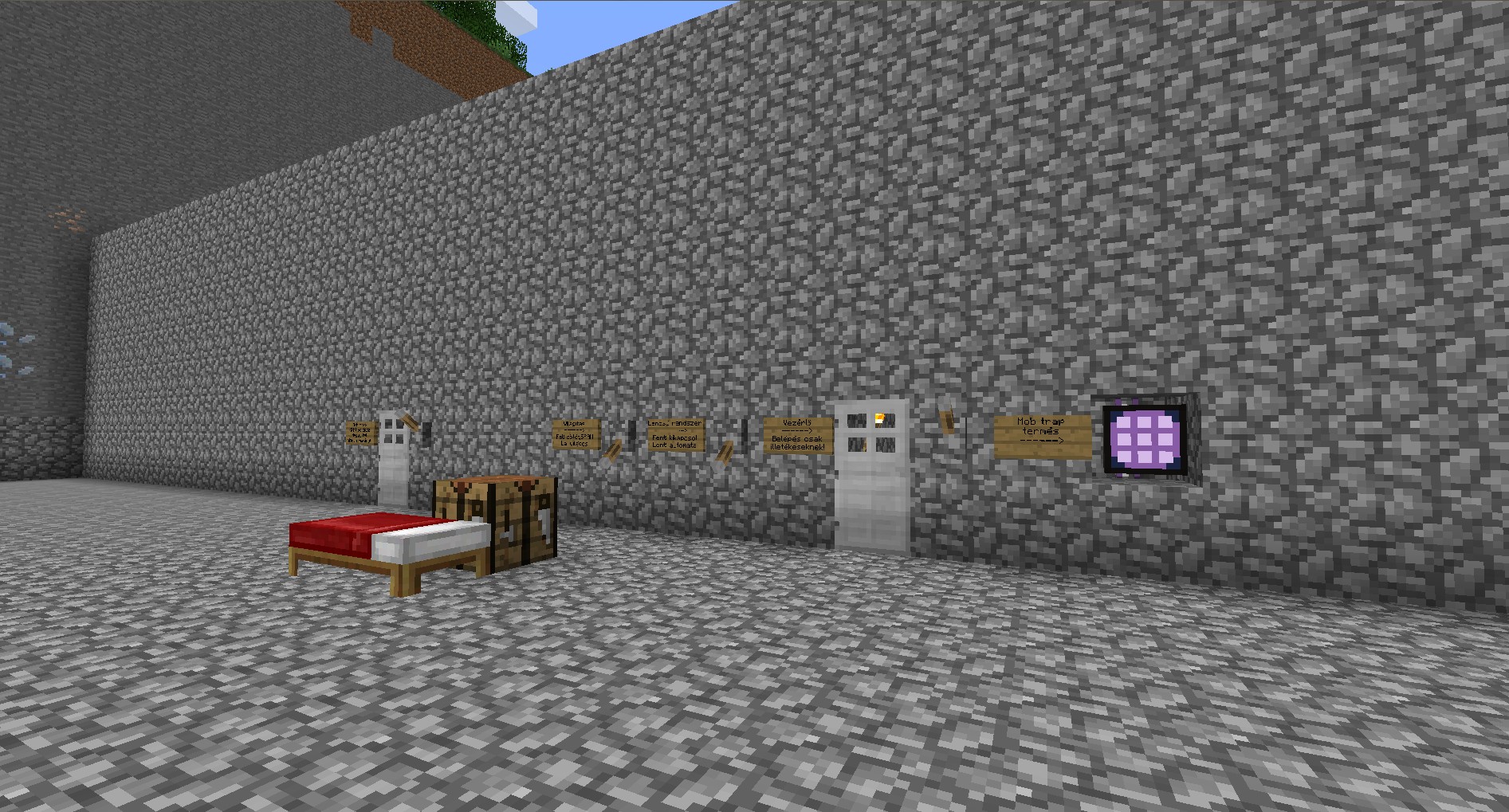 Ez még csak a kicsi része és egy mob-trap lesz, ha elkészül, olyan klasszikus, pottyantós-gyilkolós. Ez a "keresztmetszete", így mérem ki a leendő méreteket. Oldalt piston sorral fogom a vizet, amit időzített kapcsolással fogok aktiválni. 1 perc lemosás, 3 perc spawnolás. Lesz benne világítás, hogy ki tudjam kapcsolni, illetve az időzítést le kilövi egyúttal.