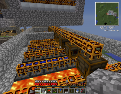 jah hogy ez még mindig a 20 ládás farm.... háát most mondhatnám hogy a csemete bemenő oldalán mondjuk egy item detektor pörget egy számlálót felfele, a bontást meg filler oldja meg tehát az miután lefut mondjuk elkezdi visszafele kattogtatni az összeset... de én még mindig 8 as blokkokra szavaznék sorting machine-al. ilyen léptéknél van megoldás logikai kapukkal vagy regulatorral, item detektoros transposeres lezárásokkal, de igazából áganként kéne feltenni őket ami sok idő és nyersanyag.
