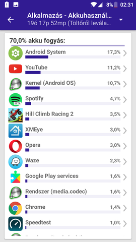 Sziasztok! Valaki tapasztalt már olyan problémát, hogy az éjjeli 1-2%-os merülés átment 10-12%-ba? Ugyanúgy fut pl. a fb app, ugyanúgy megy a wifi es a mobilnet is, mint előtte. Utána olvastam a google play service adatait töröltem, cache-t is ürítettem, de semmi. Végül teljesen újra telepítettem, de az sem segitett. Van itt valaki, aki tudna tanácsolni valamit erre a jelenségre?