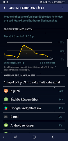Beállításokba semmi nincs tiltva Bixby megy,email szink, google szink, időjárás, full felbontás, folyamat szink gear s3, Shealt, fényerő 60% (vámpír vagyok) wifi bekapcsolva mindig, esténként turtle beach fejhallgatót nyúzom bluetooth mindig bekapcsolva.