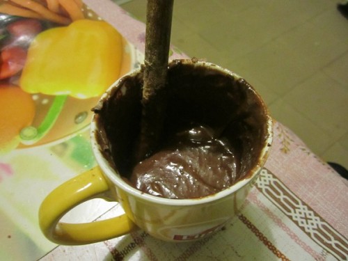 Arányaiban ugyanígy reprodukáltam 3,3 dl-es bögrében, az instant kakaópor volt egyedül valami nagyon olcsó, nagyon tárgya fajta.