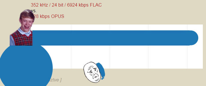 szerk: najó, nézem tovább, hátha mond valami értelmeset. Egyébként a formátumok kapcsán nem érvelni kell, hanem vaktesztelni, hogy hallod-e a különbséget. Hisz azt nem vitatja senki, hogy X formátumnál Y formátum jobb (több zenei információt tartalmaz).