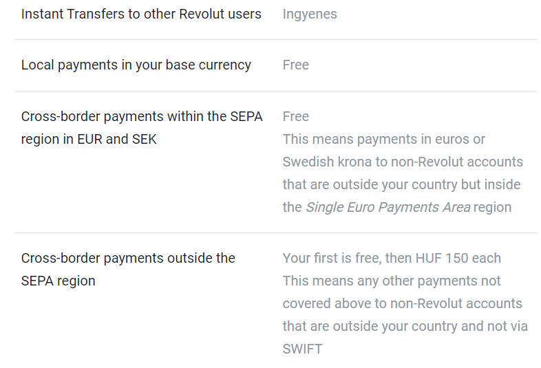 Az ingyenes SEPA-n belüli EUR utaláshoz feltételként írják, hogy a cél országnak a saját országunkon kívül kell lennie, ami nem teljesül, ha magyar Revolut accountról Magyarországra utalunk.