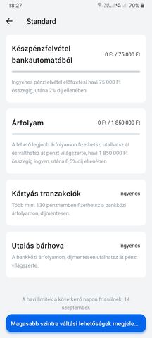 Standard csomagom van, a mai napon (aug.16) van a fordulónapom és nullázodtak is a limitek. Örömömre, az árfolyamnál maradt az 1 850 000Ft átváltási limit és nem lépett életbe a csökkentett. Nem tudom így marad-e. -