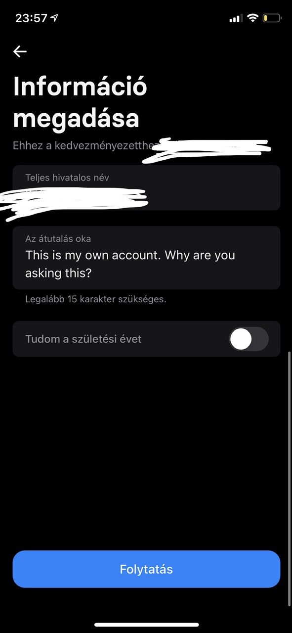 A sajat peldamat tudom hozni. Megkertek, h igazoljam a penz eredetet, ami kartyatranzakcioval erkezett a szamlamra, emiatt velhetoen a Revolut is latta, h a kuldo egy tozsden jegyzett euromilliardos forgalmu ceg. De ez nem volt eleg. Vegul random screenshotokat kertek, amiket nekem kellett megcsinalni.