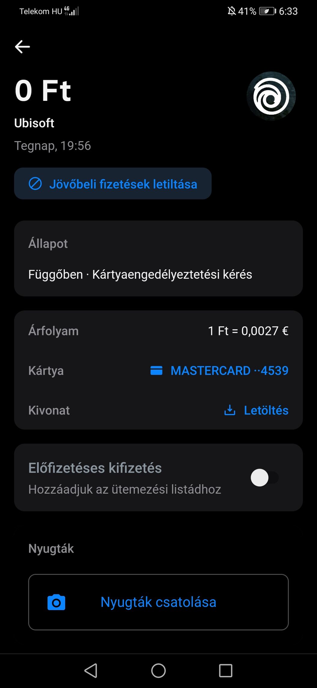 Ubisoft eddig rendszeresen,havi díjként vonta az összeget a kártyámról,de most valami hiba van vagy én vagyok a béna.Többszöri próbálkozásra sem sikerült fizetnem
