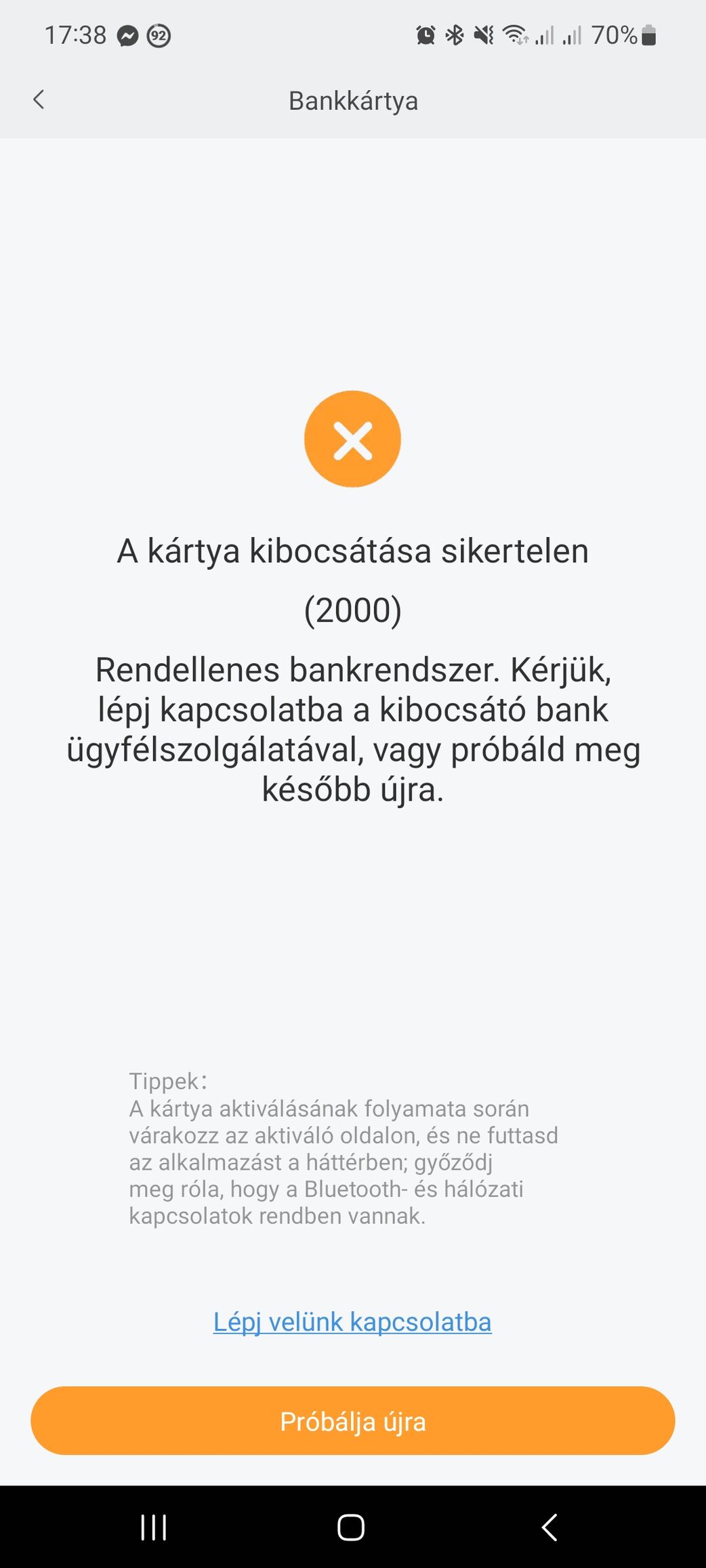 simple alkalmazással nem müködik a fizetés?befigadja a kártyát,de ha rákattintok nem csinál semmit,igy nem lehet vele fizetni..miért? -