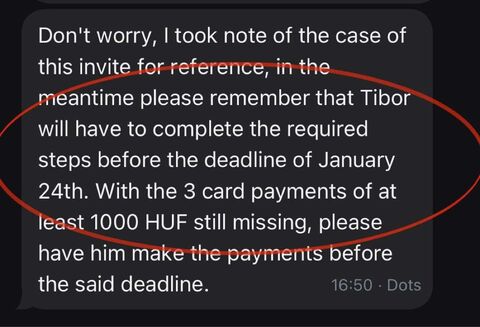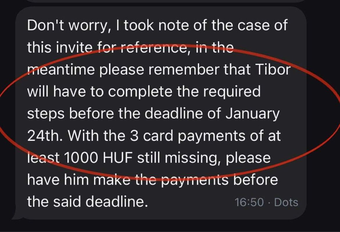 HUTCHDB, minden egyes pontot a határidőig teljesíteni kell. (6. pont az kivétel,mert nem rajtad múlik. Feltétele viszont az 5. pont teljesítése a 6. pont teljesüléséhez.).