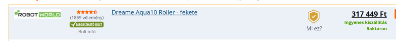 Jómagam 33 forintos áron jutottam hozzá és sanszosan lehet egy hajszállal olcsóbb is lesz, de őszintén szólva a garancia kérdését is belevéve itt kis hazánkba dupla áron sincs hasonló képességű gép amin van önűrítős dokkoló. Van valami Cecotec Conga 60k-ért ami elvileg mindenbe gyengébb, de kb ennyi...