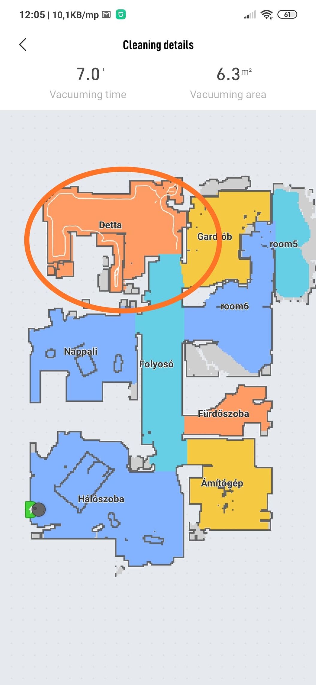 Kellett kb 6 térképezést csinálni mire azt mondom,hogy így már elfogadható,viszont ott szőnyeg volt,így megint át helyezttem egy másik helyiségbe a töltőt,oda ahol laminált padló van a nedves feltörlés miatt,hogy ott kezdjen el körözgetni ne a szőnyegen mikor indul feltörölni.