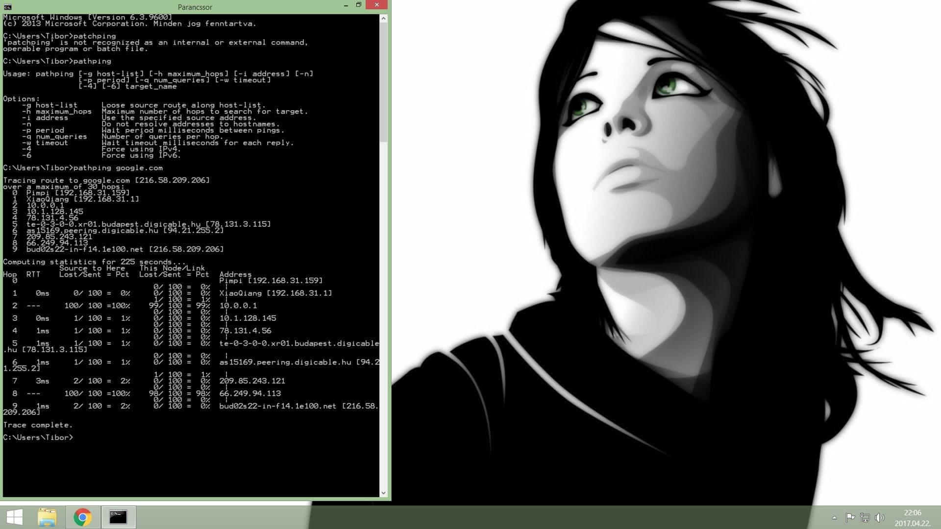 (ezeket a teszteket úgy csináltam, hogy a laptop kábellel (nem wifin) volt a routerhez csatlakoztatva, de próbáltam a közvetlen bejövő kábelre csatlakoztatva pingelni és úgy is ugyanezt kaptam)