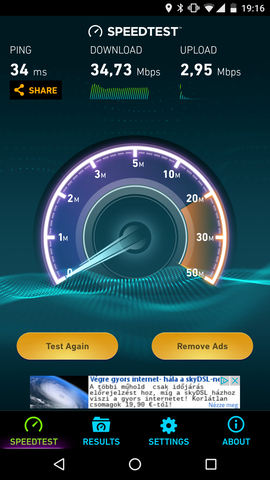 Abban a helyiségben mértem ahol a router is van (~2m) és a gépen és a telefonon is, speedtest.net oldal és alkalmazás. A digi saját mérése minimálisan magasabb értéket ad, de a feltöltést már nem futtatja le. Az adapter a laptopban lévő Dell Wireless 1704 (Broadcom BCM43142). W10 alkotói frissítés fut a gépen.