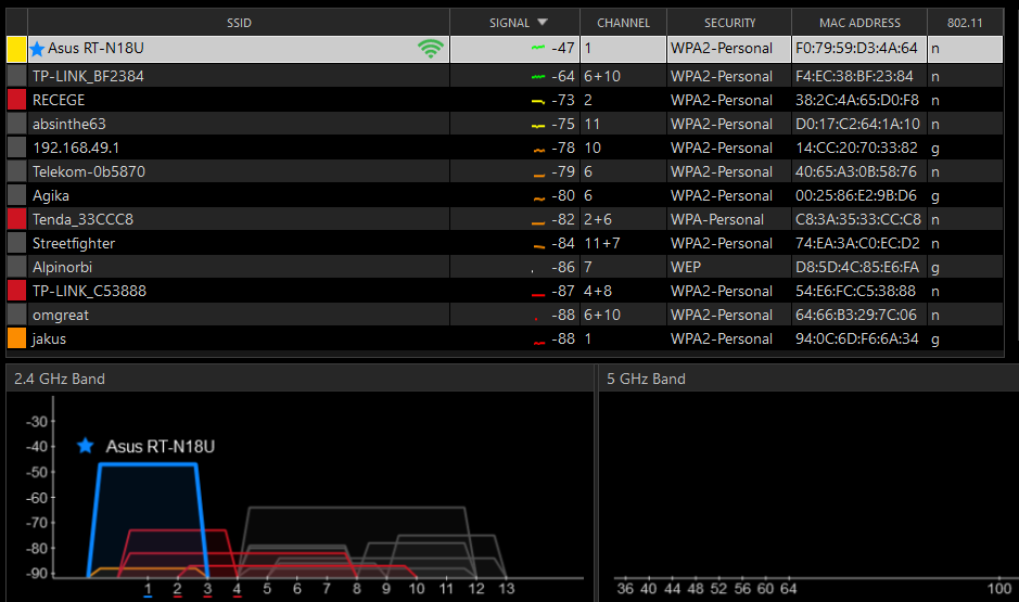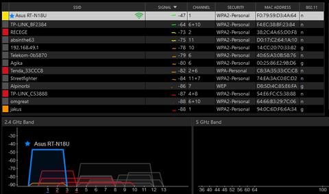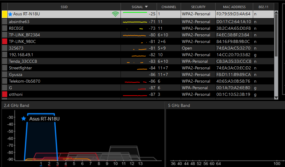Ezek közül kellene az egyikkel csinálni egy mérést a helyi viszonyokról és képernyőmentés berakni a 2,4/5 GHz-s csatorna képről.