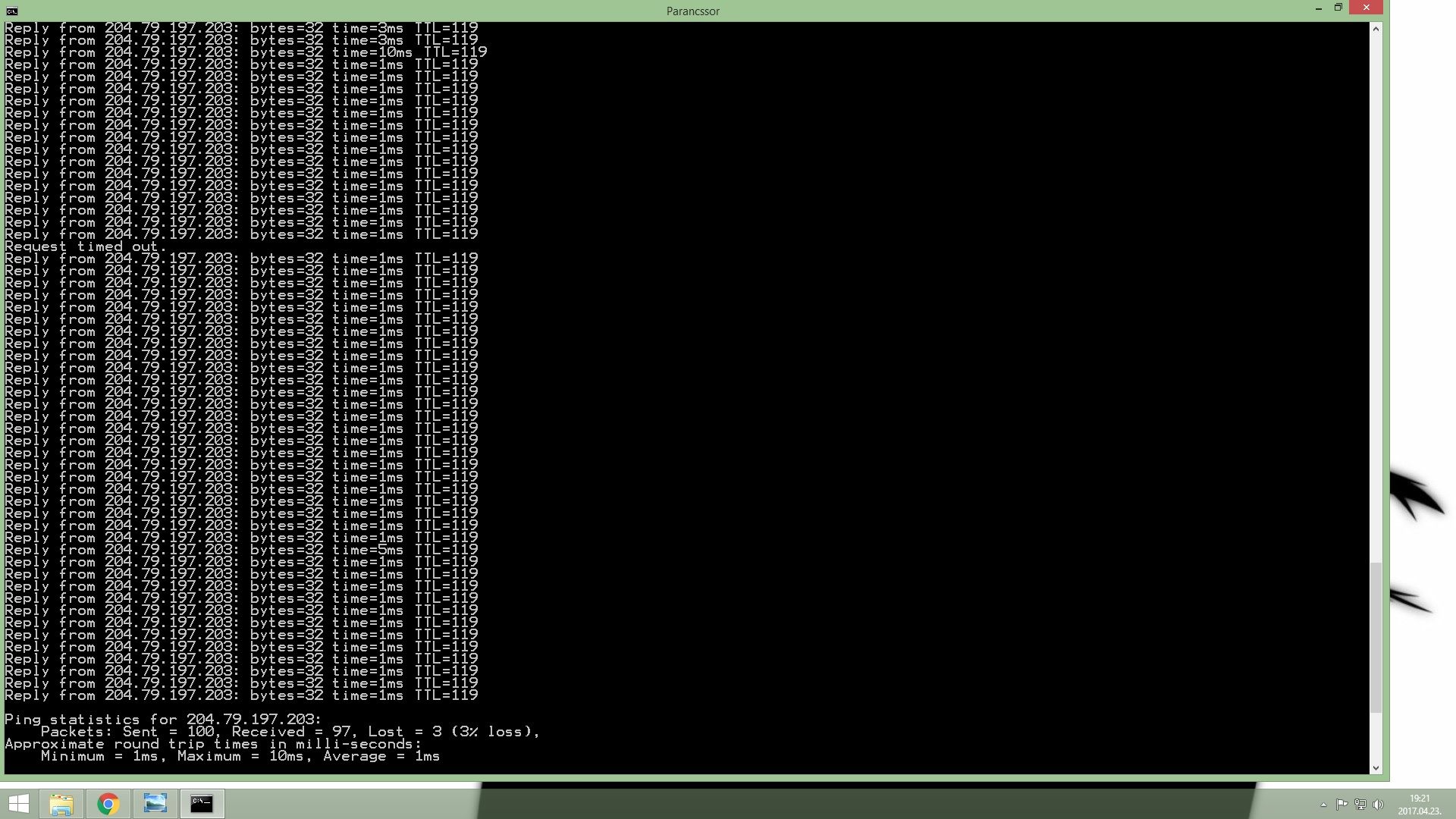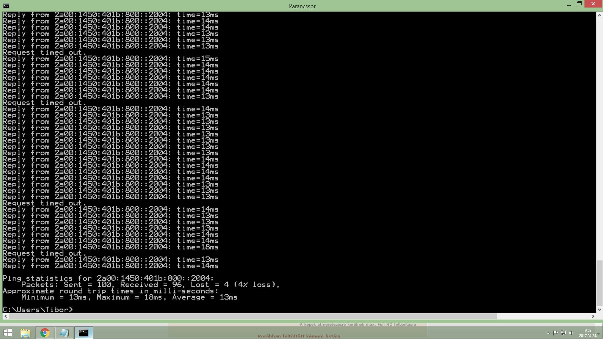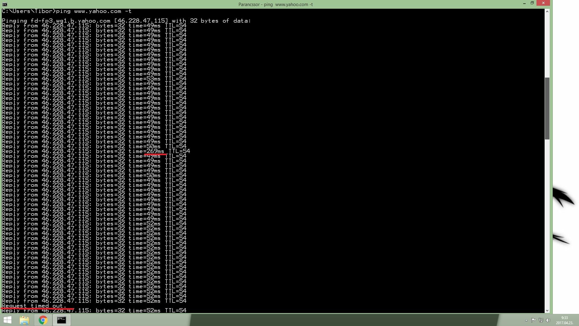 Pingeltetésnél többször is kaptam "Request timed out." hibát.