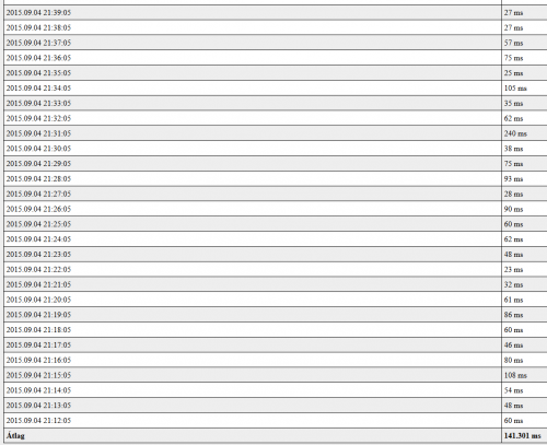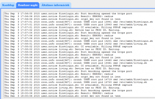 Sat Sep 5 21:00:22 2015 user.notice living.sh: crypt_key not found in jsonIlletve a ping eredmények is feltűnően magasak. Átlag 196.638 ms