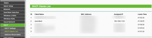 ID Client Name MAC Address Assigned IP Lease Time