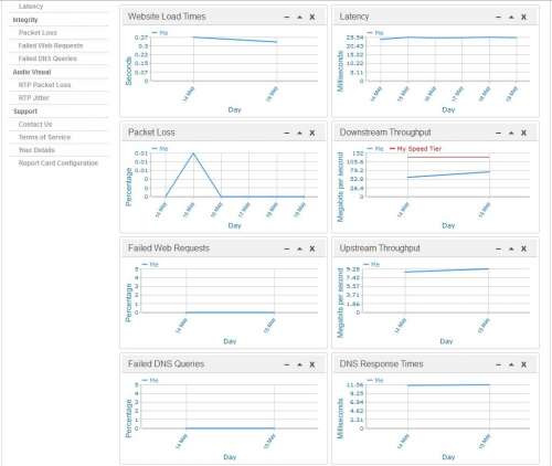 Grafikonok nincsenek még, csak egy-egy mérés van download, latency, jitter, website load, stb..., de ebből az egy adatból ugye nem rajzolgat még semmi sem! Ha fölé viszem az egeret, akkor kiírja az egyetlen mért értéket!