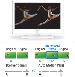 A samsung D5xxx tévéinél vezette be a led villogtatós 100Hz-et. Azaz nem csinál olyan harmadik interpolált képkockát, mint a 6-os sorozatú tévék, ehelyett azzal próbálja meg látszólag folyamatosabbá tenni a képet, hogy a két képkocka között van egy fekete is. A gyakorlatban ezt pedig úgy oldják meg, hogy a kép vetítésének idejének a felére lekapcsolják a háttérvilágítást. Ez persze azzal a következménnyel jár, hogy jelentősen leesik a fényerő. Én pl. a mediamarktban néztem, és ezzel a módszerrel még 20-as fényerőn is túl sötét, élettelen volt a kép. Tudom, hogy a mediamarkt egy erősen túlvilágított helyiség, de akkor is az volt a helyzet, hogy sötét a kép. -