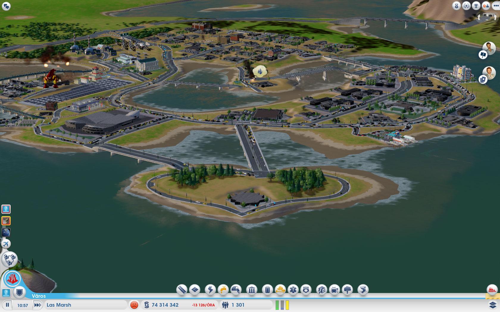 Ez simcity 4? Éveket játszottam vele, de ilyesmit nem tudtam sosem csinálni. Bár gondolom a képen látható holmik nagy rése külön kiegészítő.