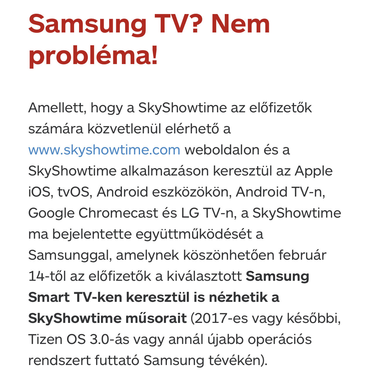 már február 14-től nézhetik a kiválasztott Samsung Smart TV-ken a SkyShowtime műsorait.
