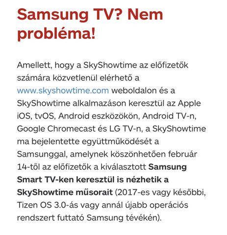 Nekem ezt írja ki: "SkyShowtime is not available in your location." Pedig Budapestről internetezek.