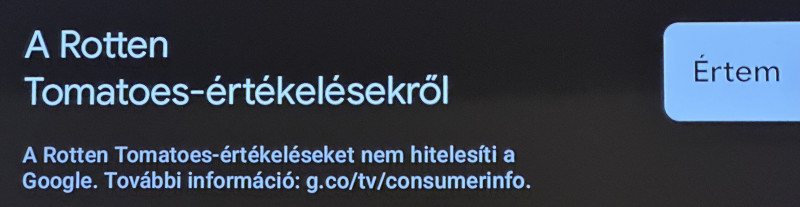 50x93j tv-m már kezdetektől kiírja ezt a rotten tomatos üzenetet. Nem tudom eltüntetni sem. Mit kell vele csinálni, hogy ne írja ki?