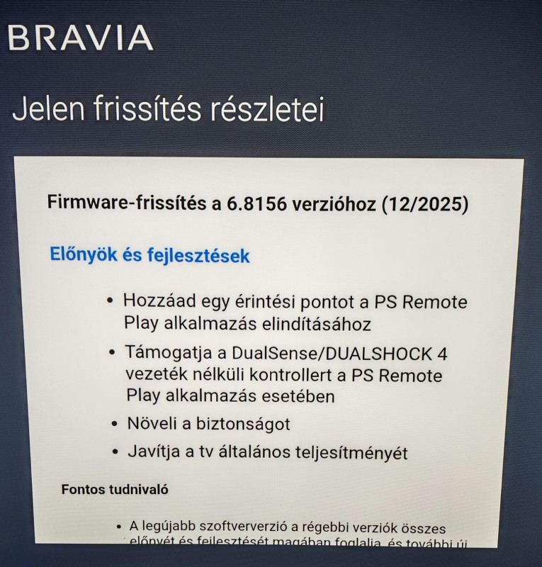 Most volt 1 hónapja frissítés, most meg irtó gyanús módon jelezte a tv (XK90), hogy új frissítés van. 🤔