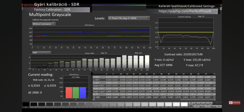 Legközelebb megmerem unlock elott a mozi kepmodot, a 100% tisztán latas végett es megoszotm. Ha van is változás akkor is deltae 4-5 körül lesz, ami persze sokkal jobb, de a jótól meg messze van.