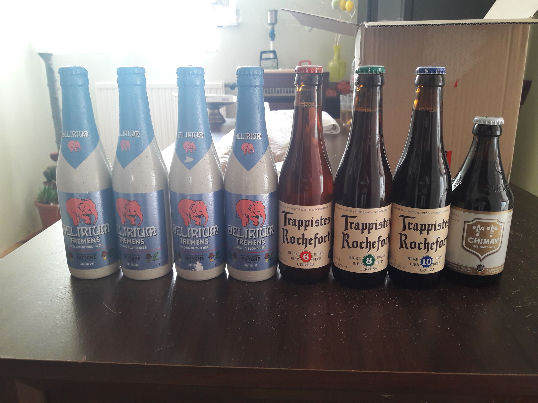 Tkp eddigi talán legjobb vagy legjobbnak tartott sör a Tripel Karmeliet volt, amit ittam. No mindegy. Már hűlnek. Kb. 5-6 napot szánok nekik, egy nap egy fajtát fogunk megkóstolni párommal...Oppsz, a másik 2 Chimay lemarad a csoportképről.