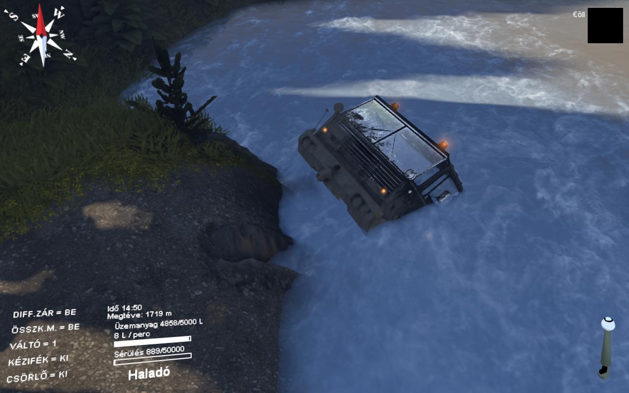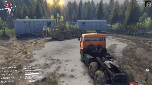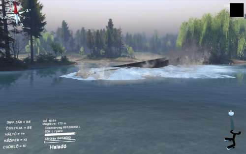 Már megvan a garázs és minden jármű, elkezdem szállítani a fát a MAZ-zal, 2 m-rel odébb megyek a vízben mint ideális lett volna, erre damage, engine stalled...