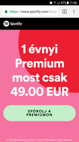 A Spotify 3 hónapos próba időszakára viszont levonták az egy eurót (326 Ft) - tehát, rendben működik a dolog.