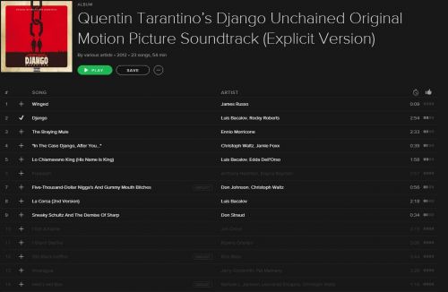 Az alábbi Django filmzene album egy hete még teljes volt! Elkezdtek kiszürkülni a számok az albumon, már alig több, mint a fele hallgatható csak. Nekem is prémiumom van, de ennek semmi köze hozzá. Szerezői jogi, vagy kiadói balhé lehet a háttérben. Szerintem egyszerűen letiltják a kiadók a kiszürkült számokat.