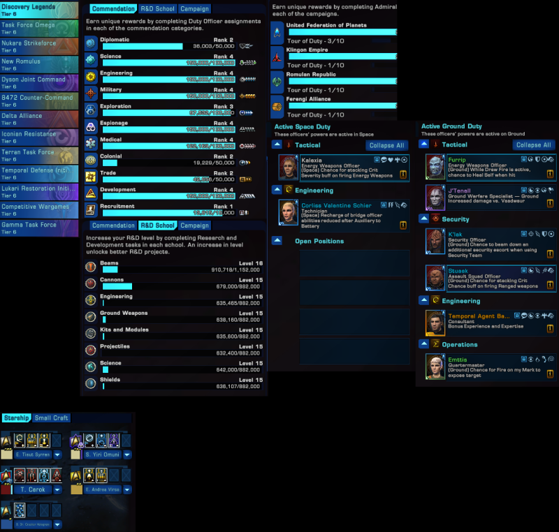 Reach Level 4 in any six Duty Officer Commendation Categories:Epic Jem’Hadar Warfare Specialist Duty OfficerReach Level 10 in any three Admiralty Campaigns:+1 Admiralty Assignment SlotAdmiralty Ship: Odo’s FlagshipSpend a total of 90 Specialization Points:Improved Secondary Specialization TraitsImproved Demolition TeamsImproved ArrestImproved Unconventional Tactics