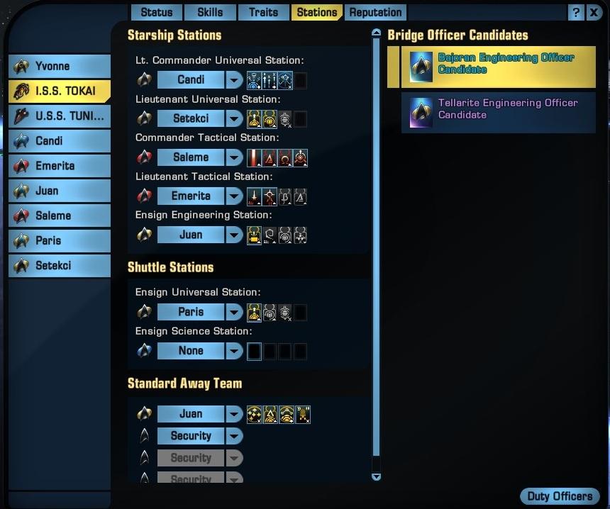 Romulans that are allied with the Klingon Defense Force can now train their bridge officers in Romulan social zones. -