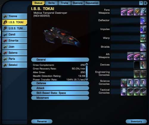 Van két AUX DHC-m, mellette 2 turret, 1 quad cannon és egy kinetic cutting beam. Így az között variálok, hogy A->W vagy A->S -es legyen-e.Egyenlőre a pajzsot erősítő mellett vagyok, mert egy kis extra shield regen nem lenne rossz, 9 vagy 10 pontnyi energiát jelentene ez pluszban.