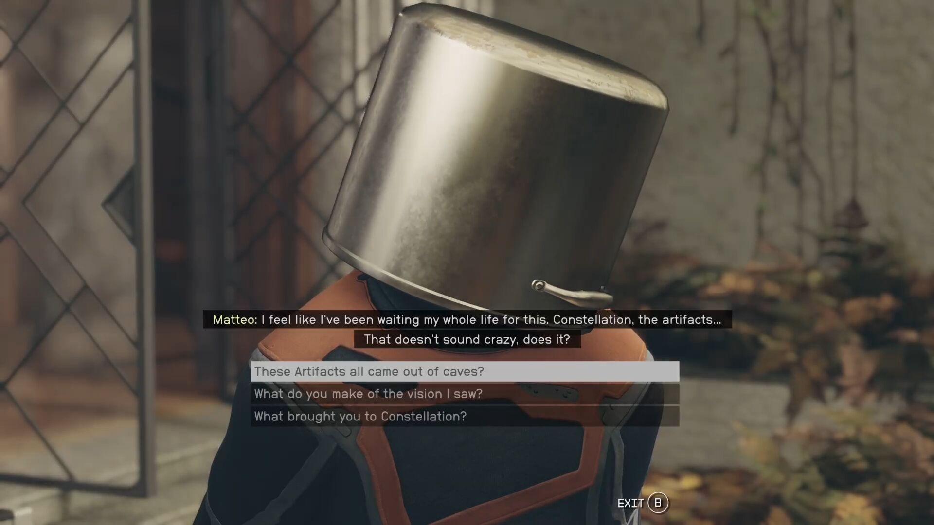 Bemegyek a Kreet bázisra, becsukom magam után a zsilipet. Jövök visszafelé, űrruha már nincs rajtam, mert minek, erre kapok egy figyelmeztetést, hogy kifogyott a zoxigén.