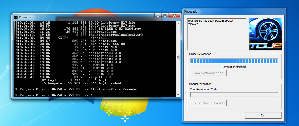 Nálam így nézett ki: "C:\Program Files (x86)\Atari\TestDrive2 Demo\Testdrive2.exe /revoke"