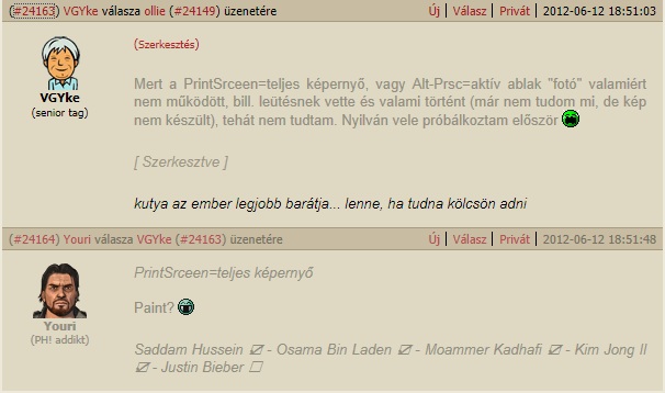 Nos ha felbukkan a Felhasználói fiók felügyelete ablak és nyomsz egy PrintScreen-t, addig ok semmi nem történik, de nem tudod elérni a Paint-ot, mert a válaszodra vár a "felügyelet". Ha nyomsz egy piros x-et (bezár), akkor olyan mint ha a nemre nyomtál volna és elindul a játék. Mire kilépsz a játékból, a vágólap tartalma (PrintScreen) elveszett, indíthatod a Paint-ot és nyomogathatod a Ctrl-vét, semmi nincs ott...