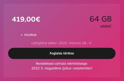 2022. május 1. 64GB rendelés maradt 2022 Q4.