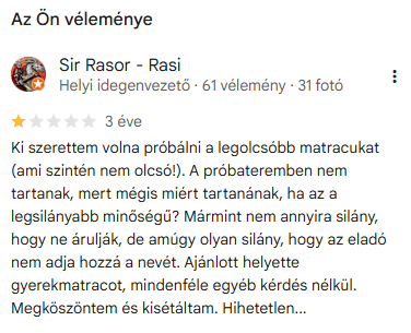 Kőkemény matracunk is volt. Na az már nekem se volt kényelmes.Az a durva, hogy a mai napig nem tudom, hogy nekem puha, közepesen kemény vagy kemény matrac volna jó, pedig már csomóban aludtam. Egyszerűen nem leltem meg az igazit 40+ év alatt. Mondjuk zsákrugósat sose próbáltam még