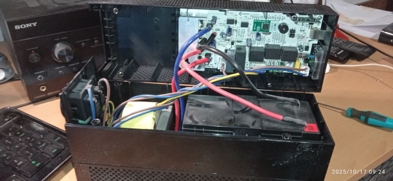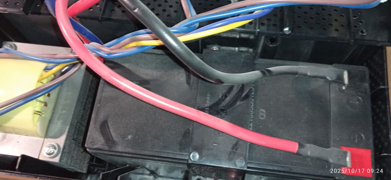 Rendeltem 2 új akksit, meg a felpuffadt kondit kicseréltem. Az új akksik gyárilag 12,1V-ra voltak töltve, összerakás után a következő történt: a bypass bekapcsolt kb 0,2 mp-re, aztán kikapcsolt. Akkumulátoros üzemmód nem működött egyáltalán. Minden próbálkozásra kattogtak a relék össze-vissza. Az akksit elkezdte tölteni, kb 26 V-tal (sorba vannak kötve), 300mA-rel. A kijelzőn a hálózati feszültséget jól jelzi, meg az akksit is érzékeli, bár azt akkor is jónak mutatta, mikor a felpuffadtak voltak benne.