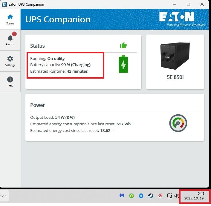 Na most vizsgázik a szünetmentes ( Eaton ) mert vihar vonul el tőlünk nem messze és pillanatnyi áramkimaradások vannak.