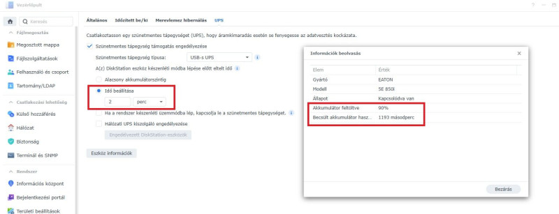 Egy Syno DS223j NAS-hoz szeretnék egy szünetmentest. Esetleg még a szolgáltatói modemet dugnám rá, így nem kell óriási teljesítmény. A terv annyi, hogy a rövid áramkimaradásokat átvigye, 5 perc áramszünet után a NAS meg álljon le szabályosan. Emiatt kellene valami USB kimenet, hogy a NAS tudja hogy most akkus üzem van, higy tudja indítani a shutdown processt. Jó lenne olyan UPS amin eleve konnektorlukak vannak, nem kéne még átalakítózgatni (mind a nas, mind a modem adapteres tápos)