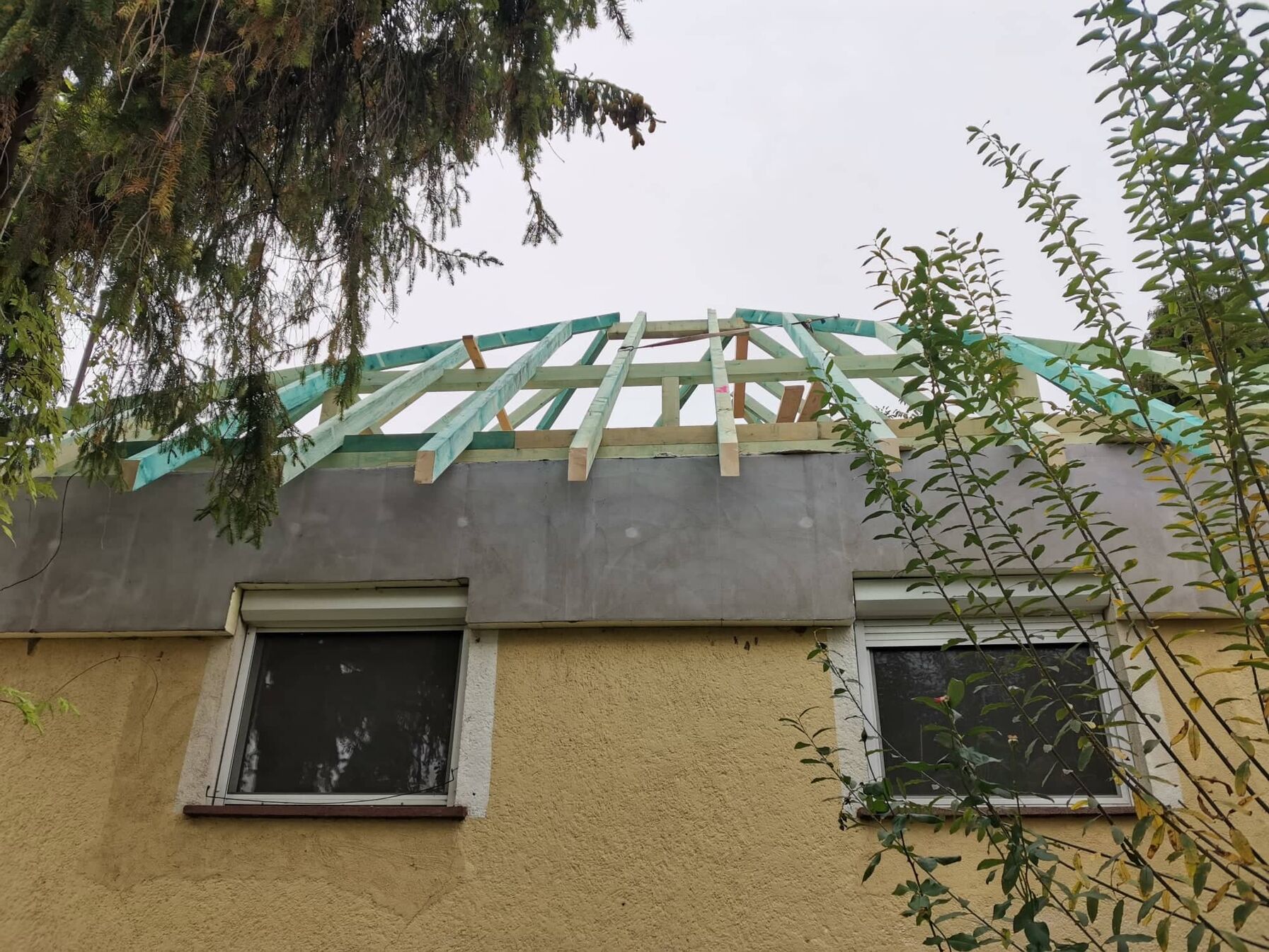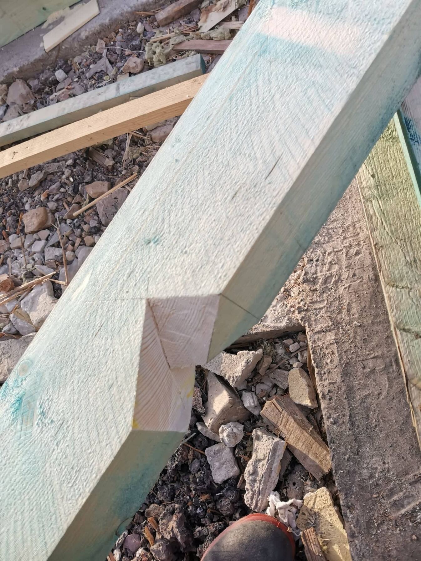 Tegnap nekiálltam elsősorban a javításnak hogy ma már tudjak tetőszerkezetet építeni. Magasságban 7,5cm párhuzamban 5cm volt a talpszelemenben. És még egy szar régi tető is útban van amit kerülgetni kell mert nem lehet elbontani amíg az új tető le nincs fóliázva. Miért vállalok be ilyeneket?
