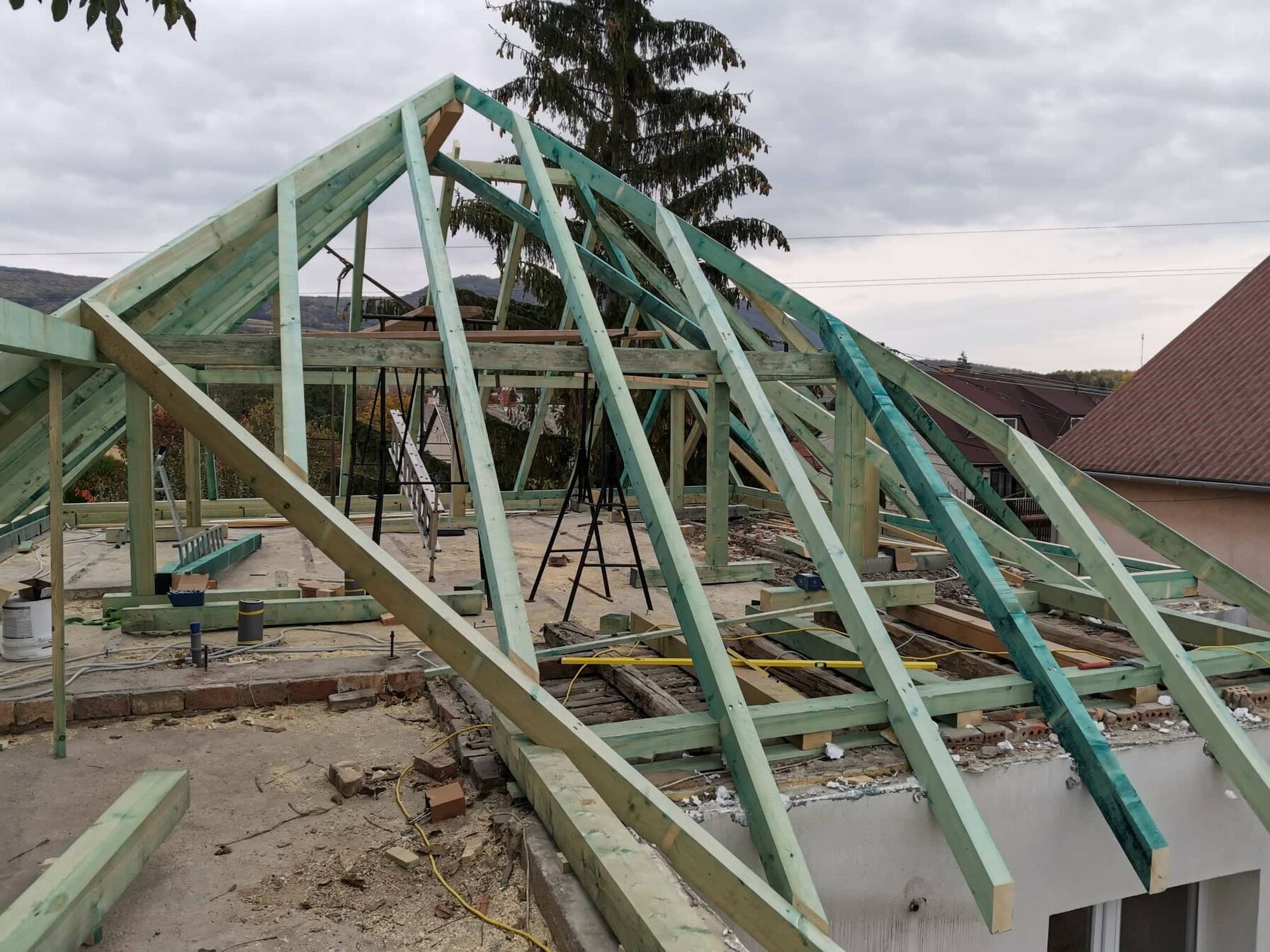 Fárasztó napok ezek. Ilyenkor kerülnek fel a legnehezebb fák. Sajnos eddig az összes élt toldani kellett ezért az eléggé vitte az időt. Még mára maradt egy hosszú vápa és egy rövidke meg egy rövid él. Ha ezek bent vannak akkor a fő szerkezeti tartó elemek a helyükre kerültek és mehetnek a csonkaszarufák.